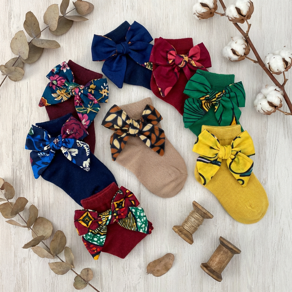 Meias com laço em capulana